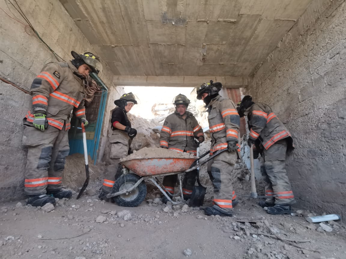 Bomberos del municipio han laborado más de 15 horas continuas en la remoción de los escombros en las viviendas afectadas.